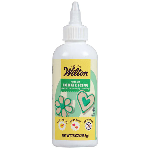 704-0143 The Wilton Green Cookie Icing is ready-to-use with a delicious vanilla flavor. The bottle includes an adjustable precision tip for effor...