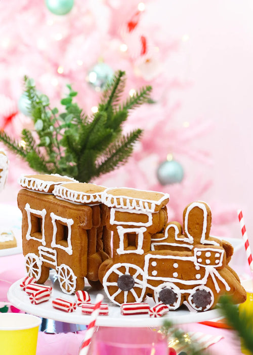 Included in the kit is everything you need to build and decorate your own classic Christmas gingerbread train, including having the design baked into the biscuit for easy piping!